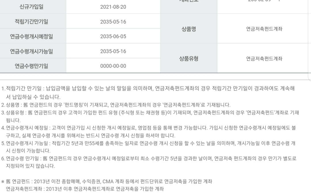 - 연금수령개시예정일: 2035.06.05