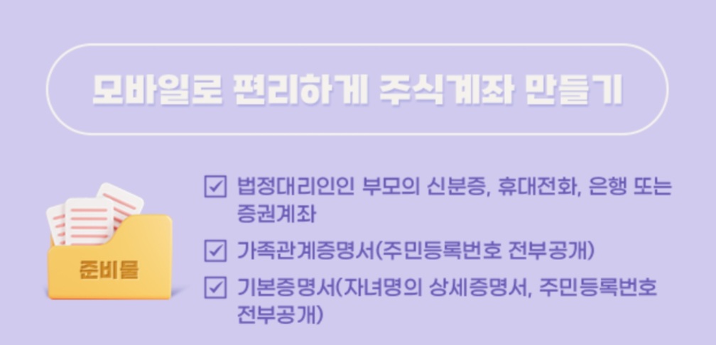 <비대면 자녀주식계좌개설 필요한 준비물>