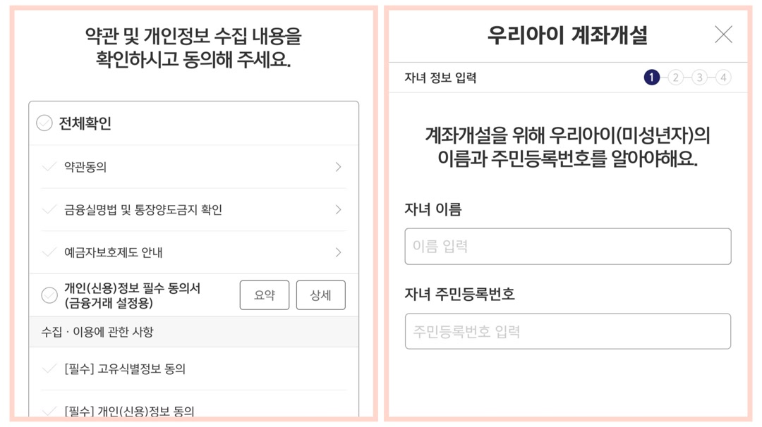 - 미성년자 은행 또는 증권계좌(선택)
