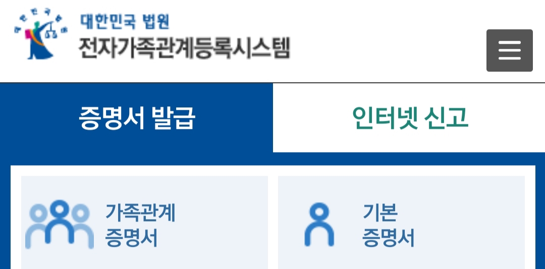 가족관계증명서와 기본증명서는 법원 전자가족관계등록시스템에서 무료로 발급 받을 수 있습니다.