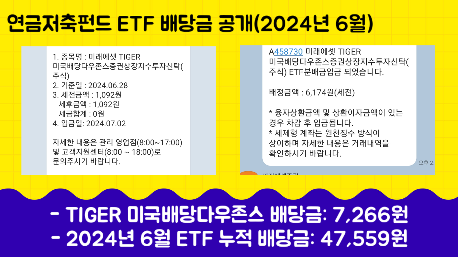 - TIGER 미국배당다우존스 ETF 배당금: 7,266원