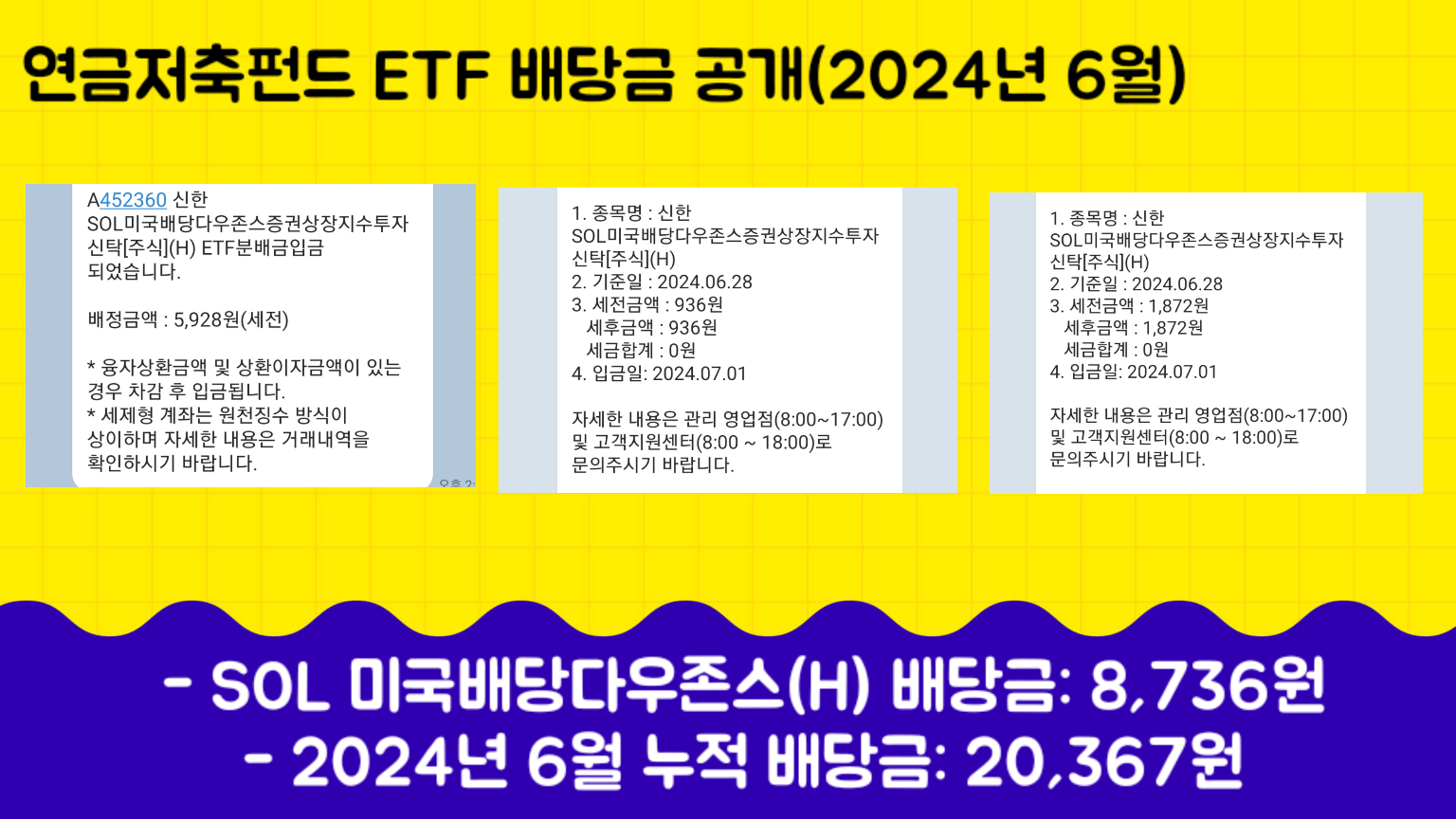 - SOL 미국배당다우존스(H) ETF 배당금: 8,736원