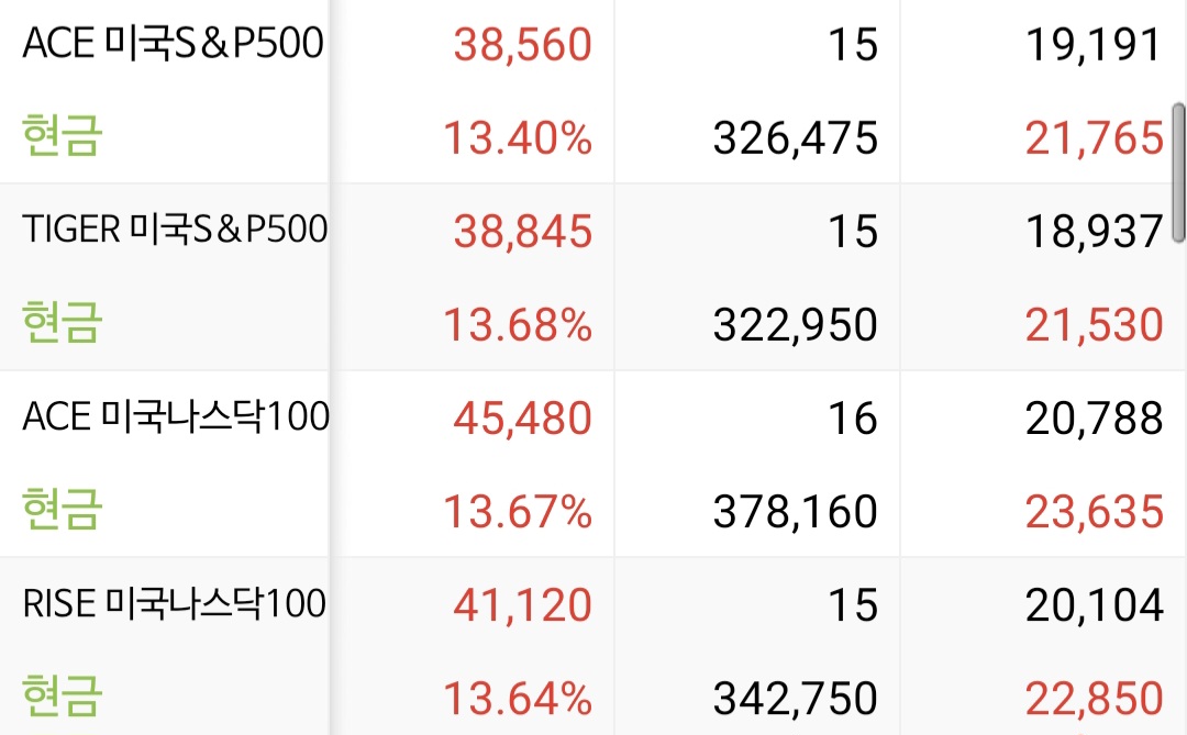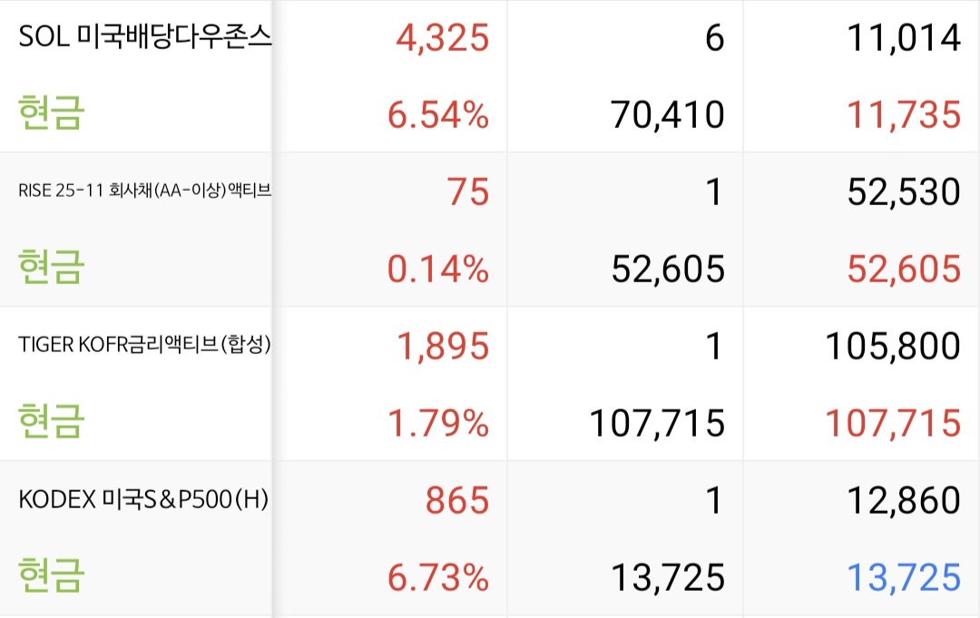 배당금을 주는 ETF 위주로 넣어두었습니다. 1년 뒤 열어본 계좌에 놀란 하루였습니다.