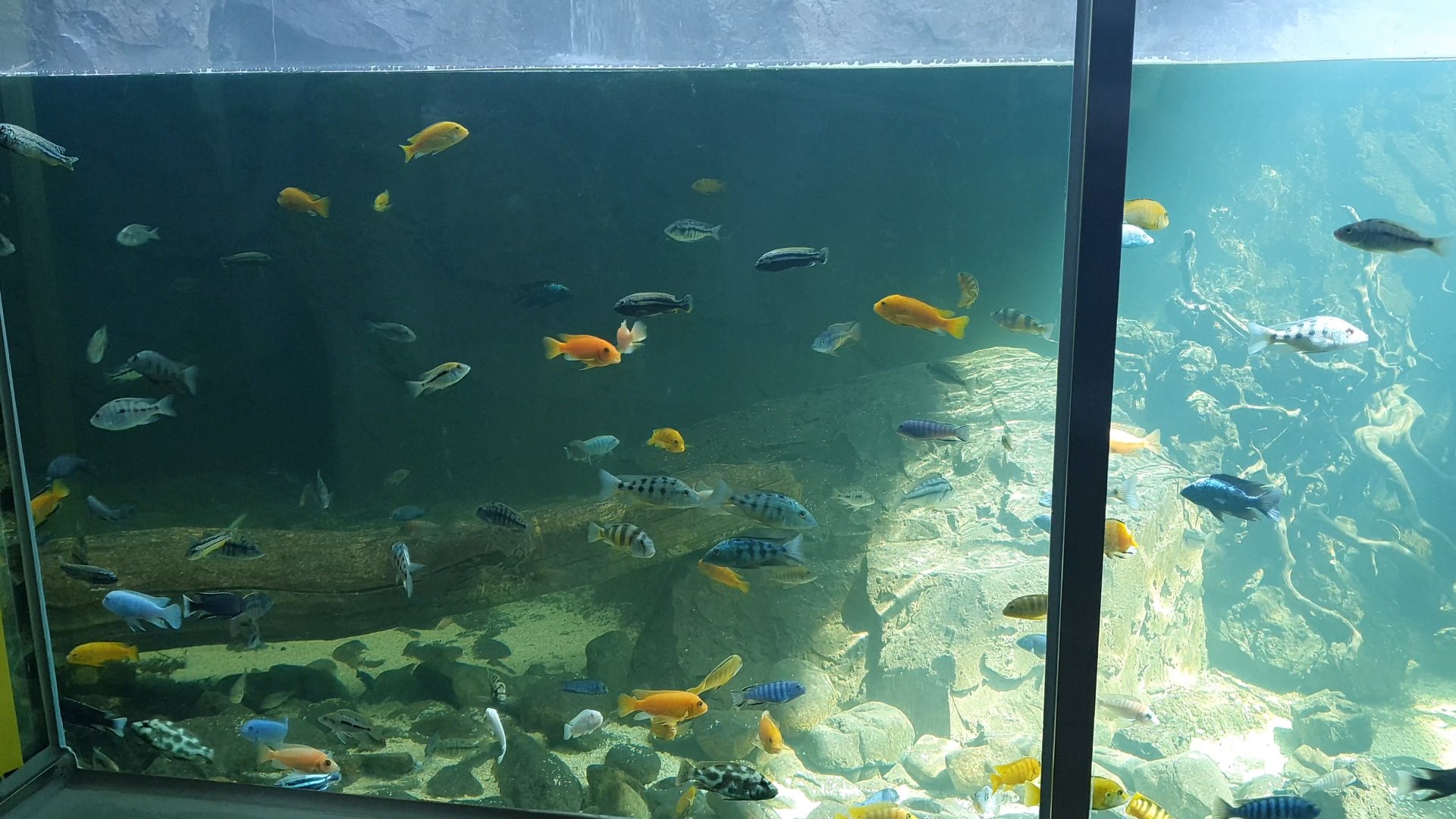 이 아쿠아리움은 자연광으로 친환경을 내세우고 있다고 해요. 자연광이다 보니 해저 터널 안이 선명하게 보이지 않아요.