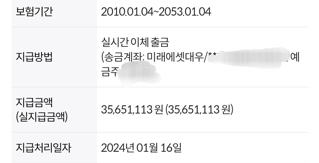 삼성화재에서 11시 30분쯤 해지환급금에 대한 전화가 오고 15시 20분쯤 해지환급영수증을 받았습니다.