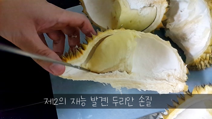 두리안을 손질하며 제2의 재능을 발견했어요. 두리안을 이렇게 잘 까다니.